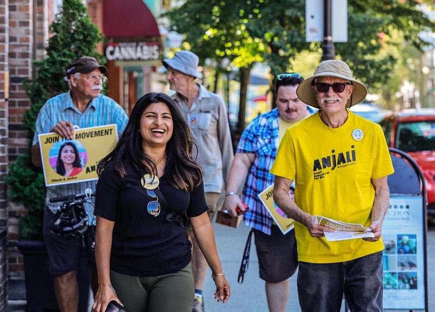 ANJALI APPADURAI IS MOUNTING A CHALLENGE FOR LEADERSHIP OF THE BC NDP. SHE IS SEEN HERE VISITING BAKER STREET IN NELSON ON TUESDAY, AUGUST 30, 2022.